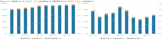 截止2024-12-13,两融余额18,847.10亿(204.62亿,1.10%)占A股流通市值2.37%。两融往来额8,978.81亿(990.62亿,12.40%),占A股成交额9.29%。